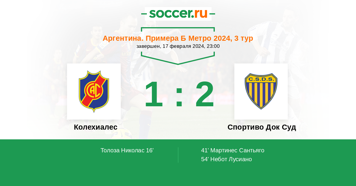 Колехиалес - Спортиво Док Суд: обзор матча 17 февраля 2024