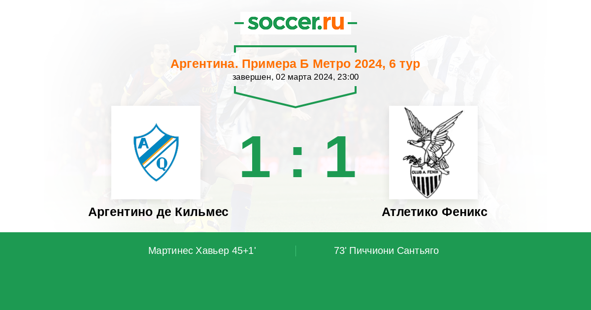 Аргентино де Кильмес - Атлетико Феникс: обзор матча 2 марта 2024