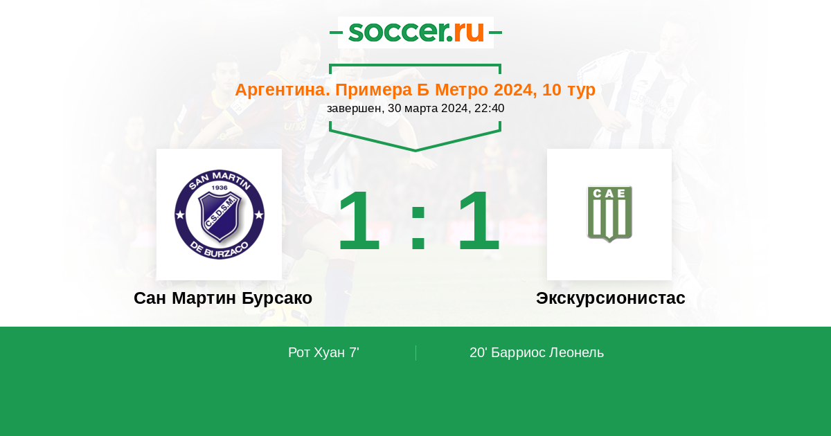 Сан Мартин Бурсако - Экскурсионистас: обзор матча 30 марта 2024