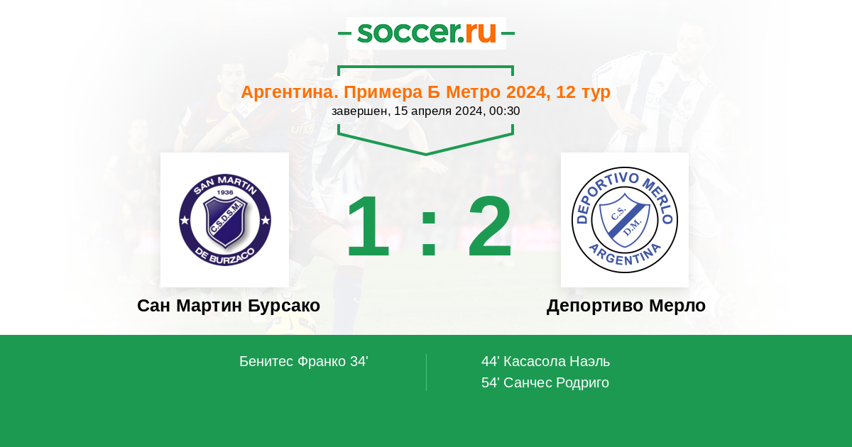 Сан Мартин Бурсако - Депортиво Мерло: обзор матча 15 апреля 2024