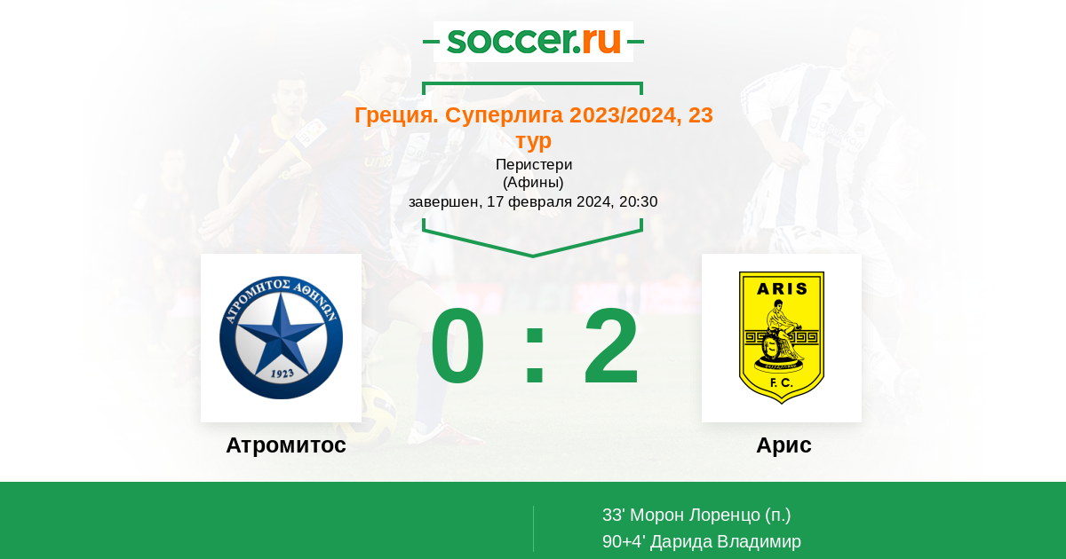 Атромитос - Арис: обзор матча 17 февраля 2024