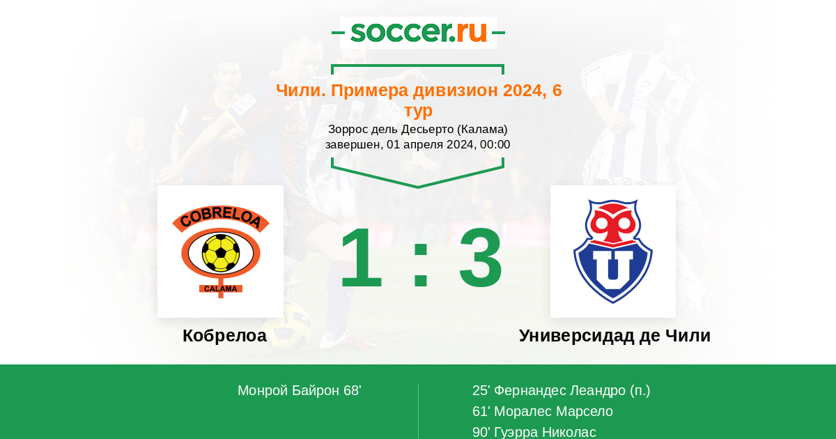 Кобрелоа - Универсидад де Чили: обзор матча 1 апреля 2024