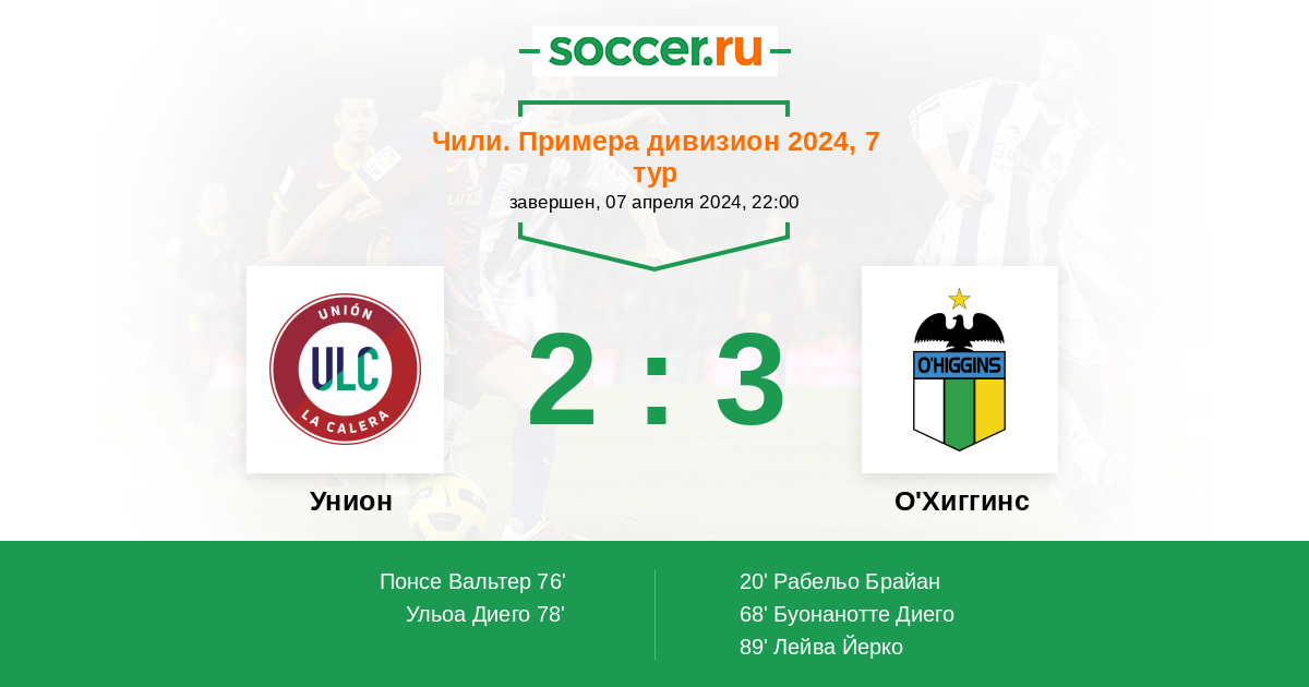 Унион - О'Хиггинс: обзор матча 7 апреля 2024