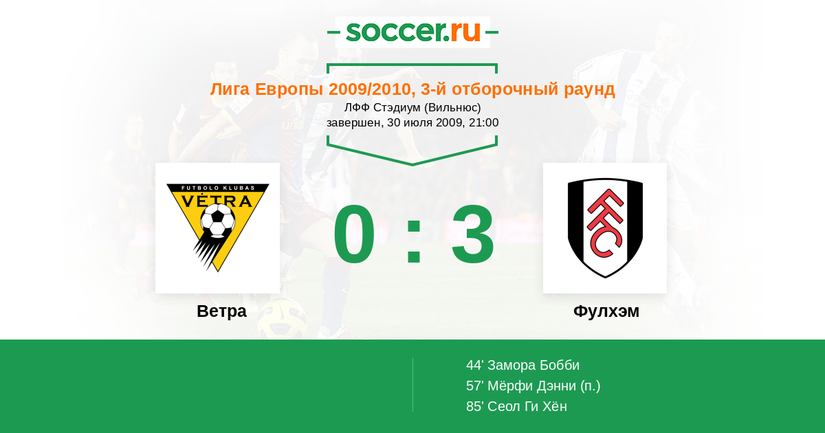 Ветра - Фулхэм: обзор матча 30 июля 2009