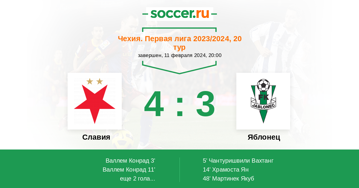 Славия - Яблонец: обзор матча 11 февраля 2024