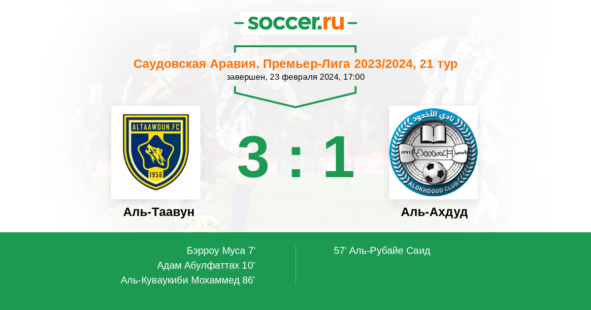 Аль-Таавун - Аль-Ахдуд: обзор матча 23 февраля 2024