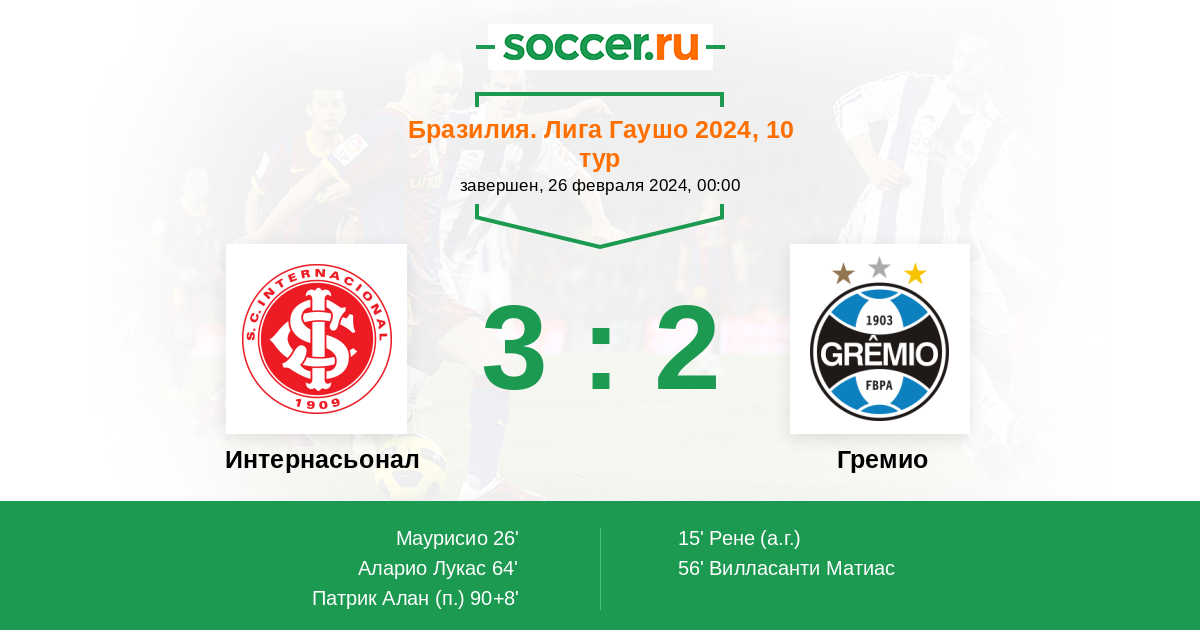 Интернасьонал - Гремио: обзор матча 26 февраля 2024