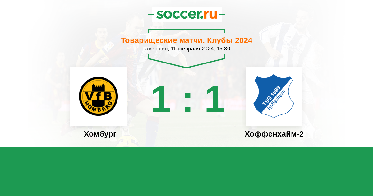 Хомбург - Хоффенхайм-2: обзор матча 11 февраля 2024