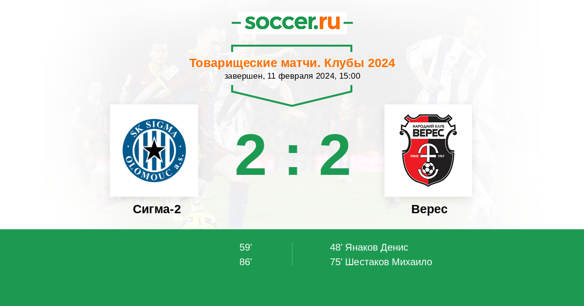 Сигма-2 - Верес: обзор матча 11 февраля 2024