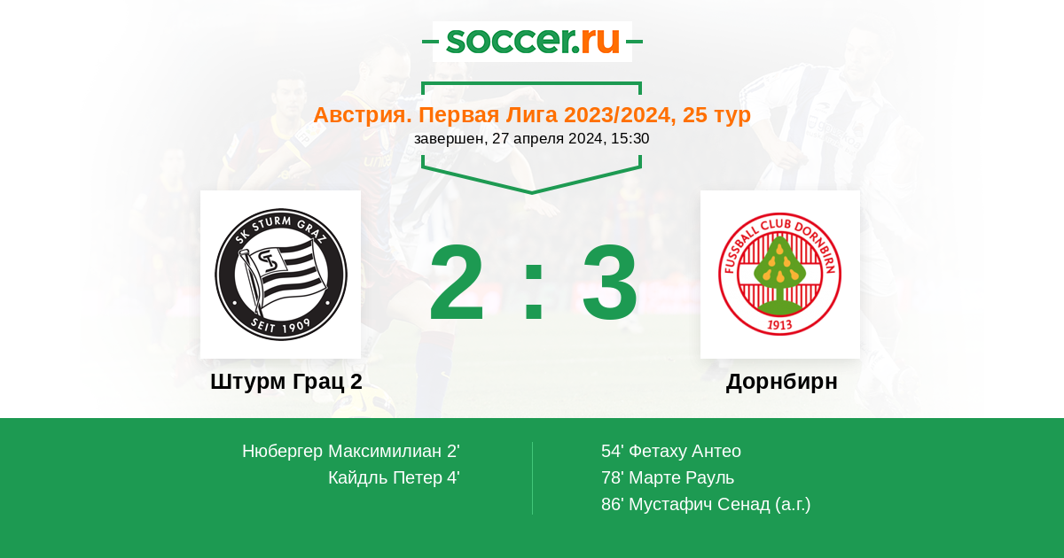 Штурм Грац 2 - Дорнбирн: обзор матча 27 апреля 2024