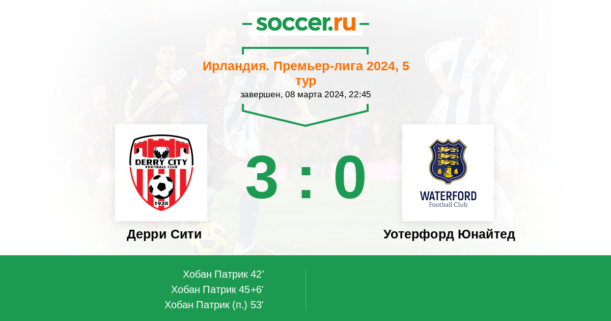 Дерри Сити - Уотерфорд Юнайтед: обзор матча 8 марта 2024