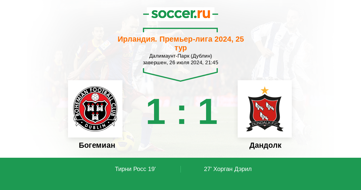 Богемиан - Дандолк: обзор матча 26 июля 2024