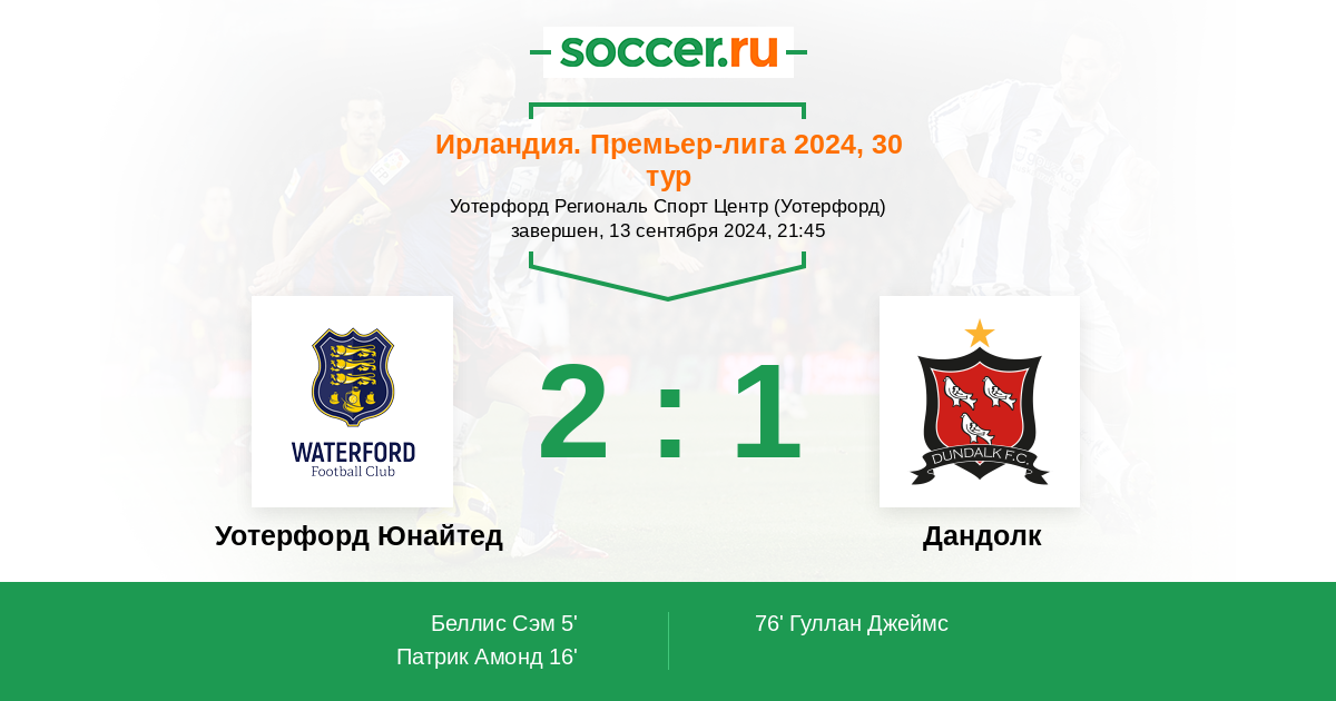 Уотерфорд Юнайтед - Дандолк: обзор матча 13 сентября 2024
