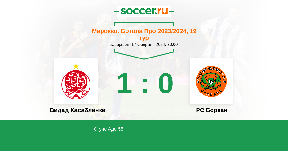 Видад Касабланка - РС Беркан: обзор матча 17 февраля 2024