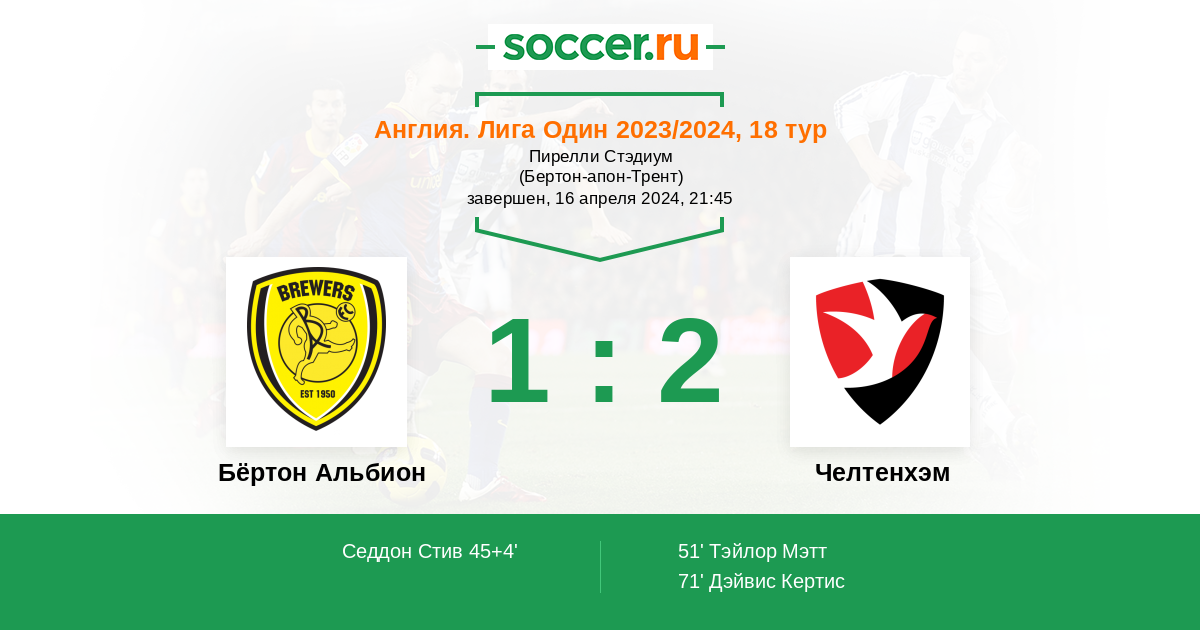 Бёртон Альбион - Челтенхэм: обзор матча 16 апреля 2024