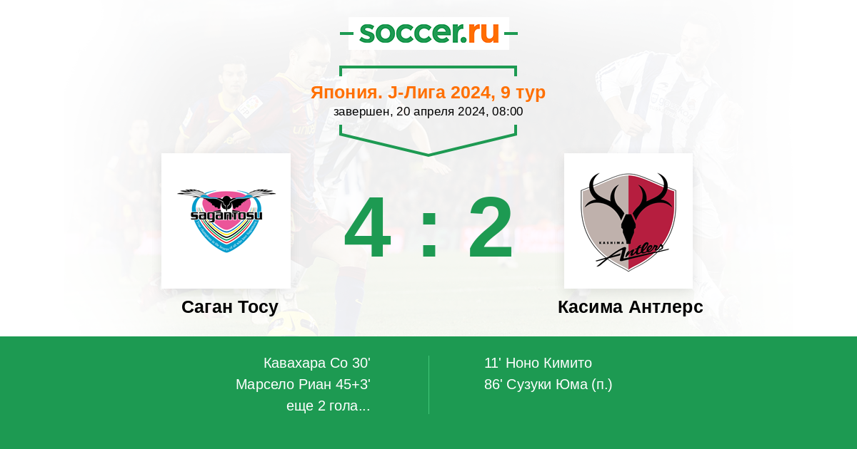 Саган Тосу - Касима Антлерс: обзор матча 20 апреля 2024