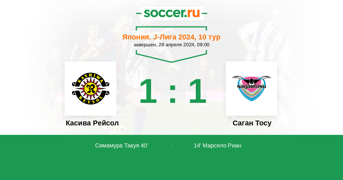 Касива Рейсол - Саган Тосу: обзор матча 28 апреля 2024
