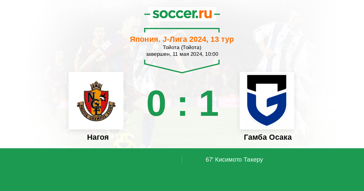 Нагоя - Гамба Осака: обзор матча 11 мая 2024