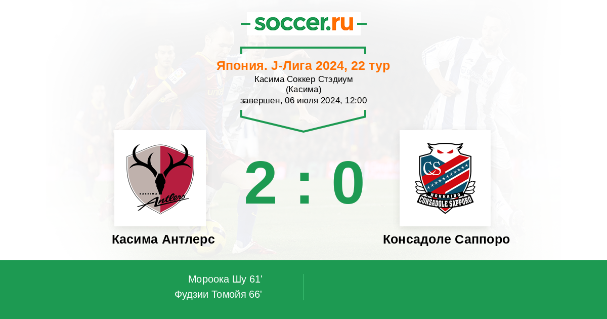 Касима Антлерс - Консадоле Саппоро: обзор матча 6 июля 2024