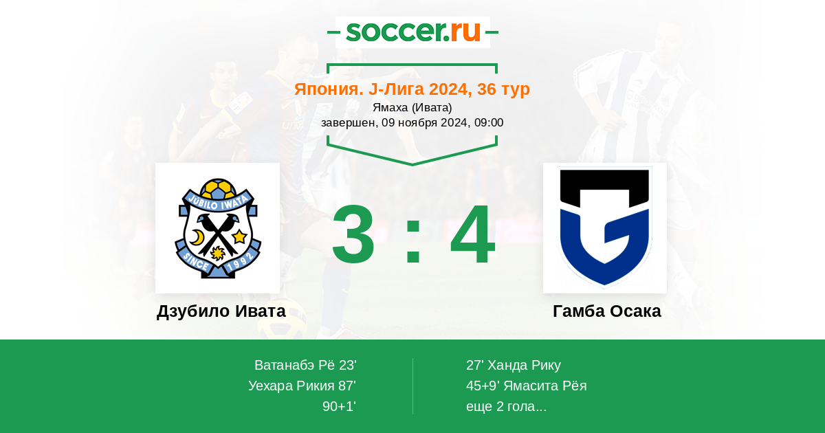 Дзубило Ивата - Гамба Осака: обзор матча 9 ноября 2024