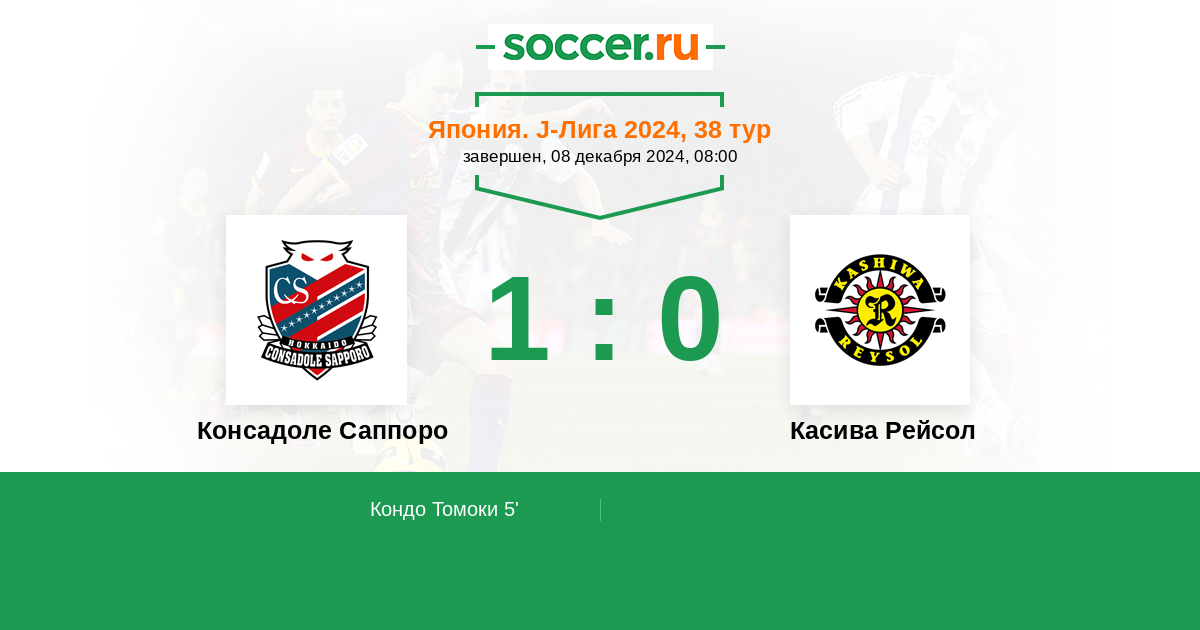 Консадоле Саппоро - Касива Рейсол: обзор матча 8 декабря 2024