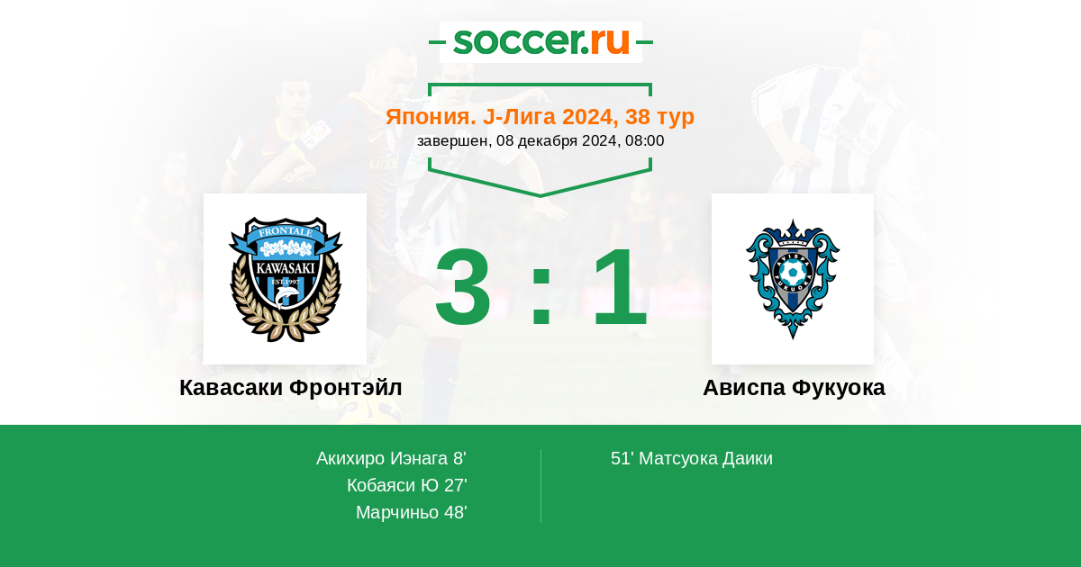 Кавасаки Фронтэйл - Ависпа Фукуока: обзор матча 8 декабря 2024
