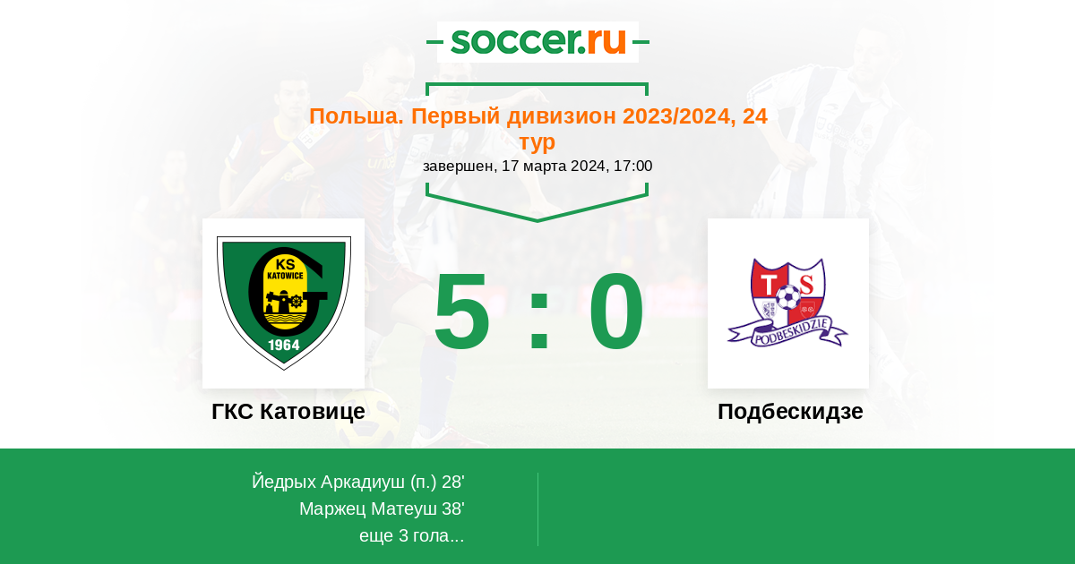 ГКС Катовице - Подбескидзе: обзор матча 17 марта 2024