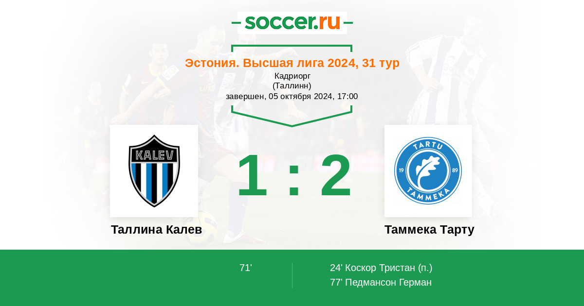 Таллина Калев - Таммека Тарту: обзор матча 5 октября 2024