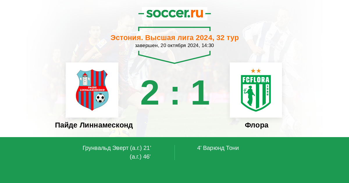 Пайде Линнамесконд - Флора: обзор матча 20 октября 2024