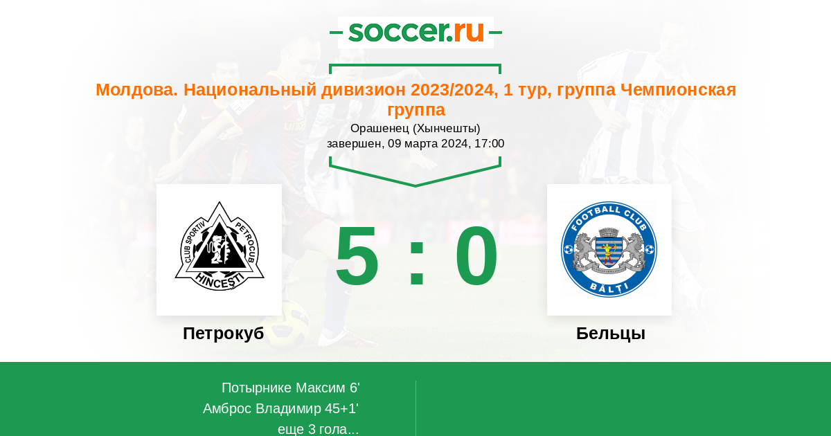 Петрокуб - Бельцы: обзор матча 9 марта 2024
