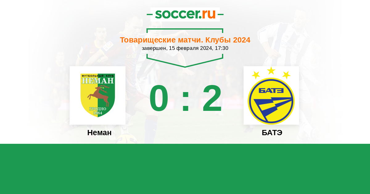 Неман - БАТЭ: обзор матча 15 февраля 2024