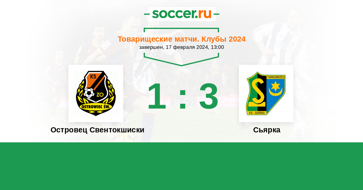 Островец Свентокшиски - Сьярка: обзор матча 17 февраля 2024