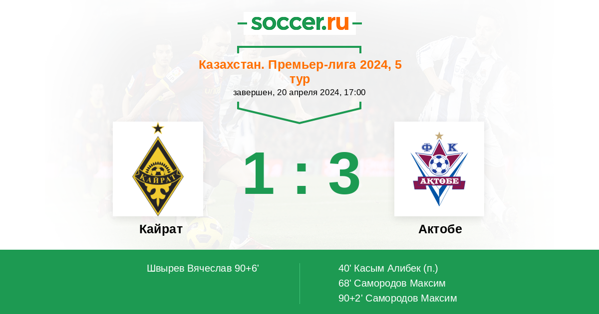Кайрат - Актобе: обзор матча 20 апреля 2024