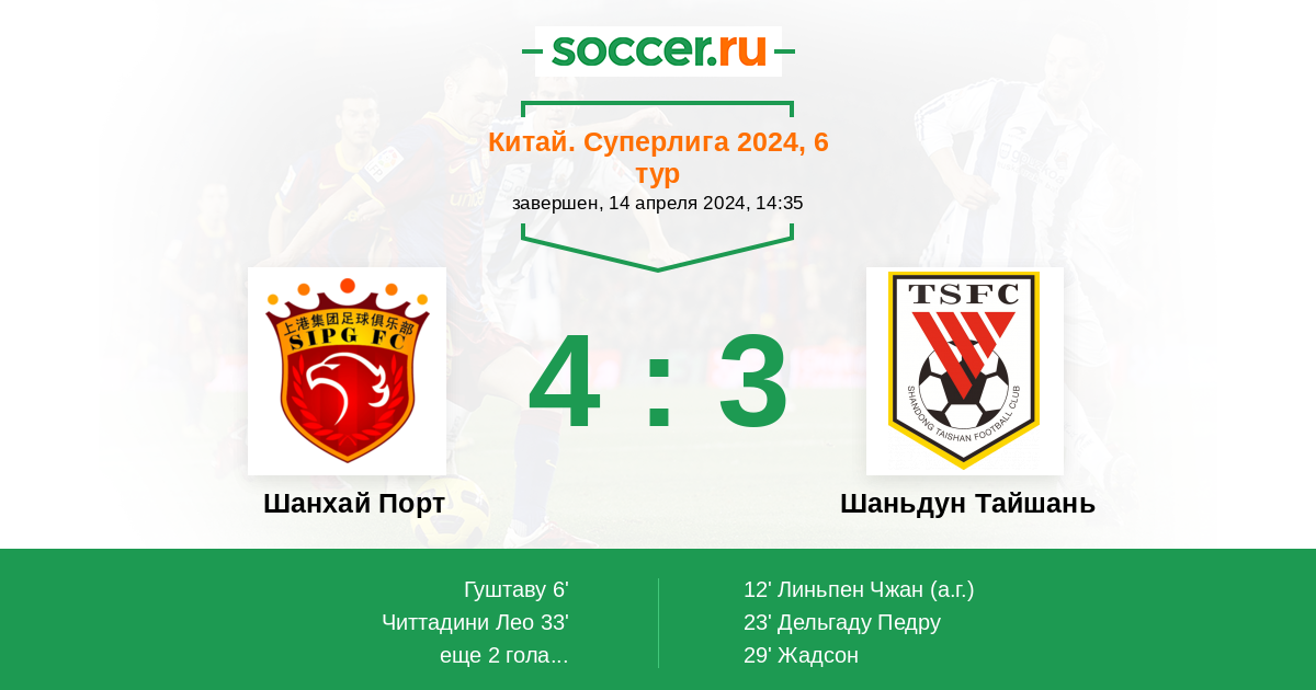 Шанхай Порт - Шаньдун Тайшань: обзор матча 14 апреля 2024