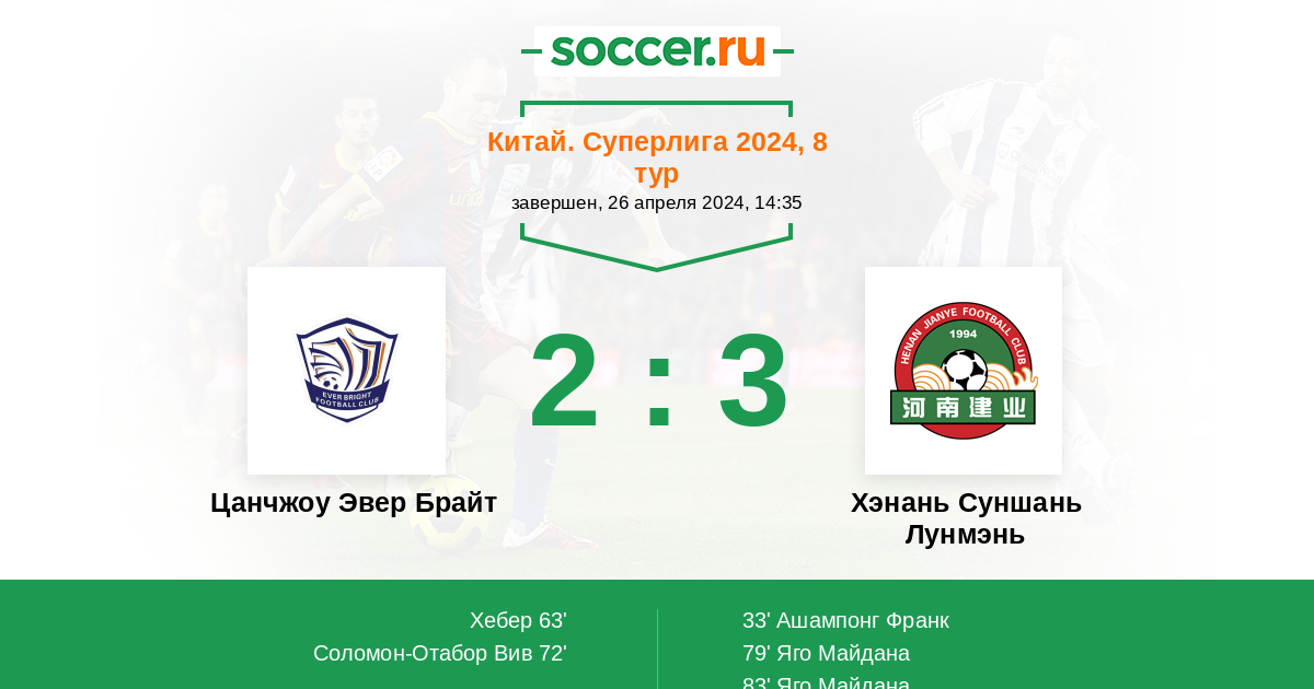 Цанчжоу Эвер Брайт - Хэнань Суншань Лунмэнь: обзор матча 26 апреля 2024