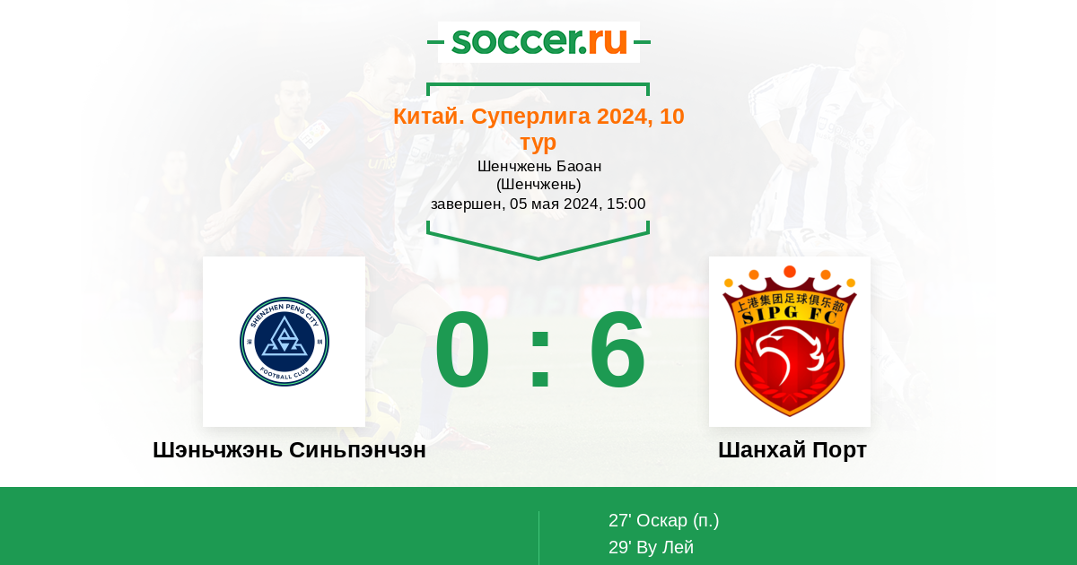 Шэньчжэнь Синьпэнчэн - Шанхай Порт: обзор матча 5 мая 2024