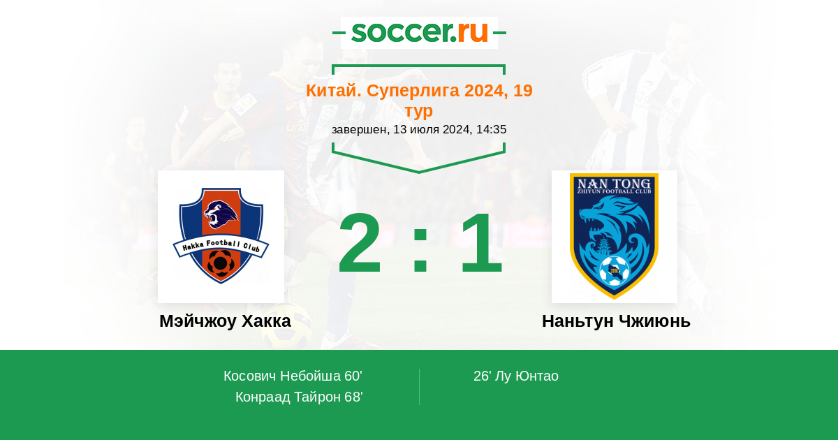 Мэйчжоу Хакка - Наньтун Чжиюнь: обзор матча 13 июля 2024