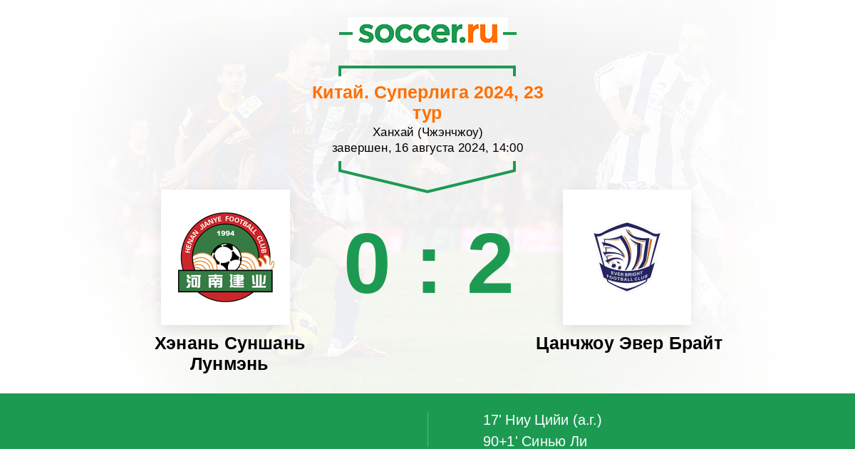 Хэнань Суншань Лунмэнь - Цанчжоу Эвер Брайт: обзор матча 16 августа 2024