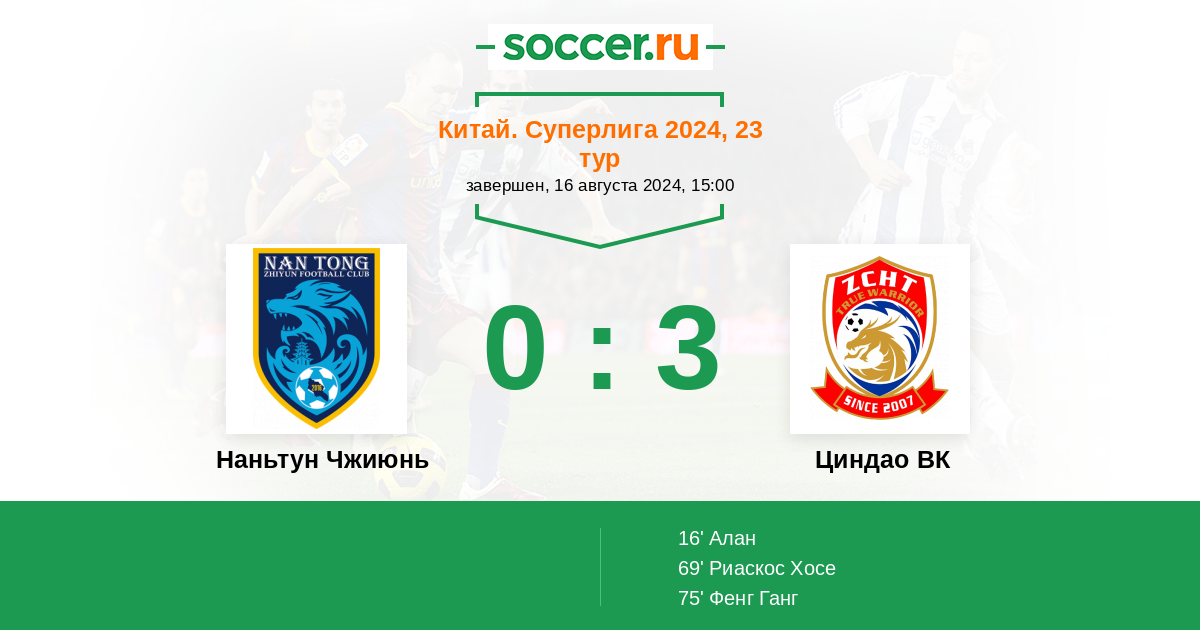 Наньтун Чжиюнь - Циндао ВК: обзор матча 16 августа 2024