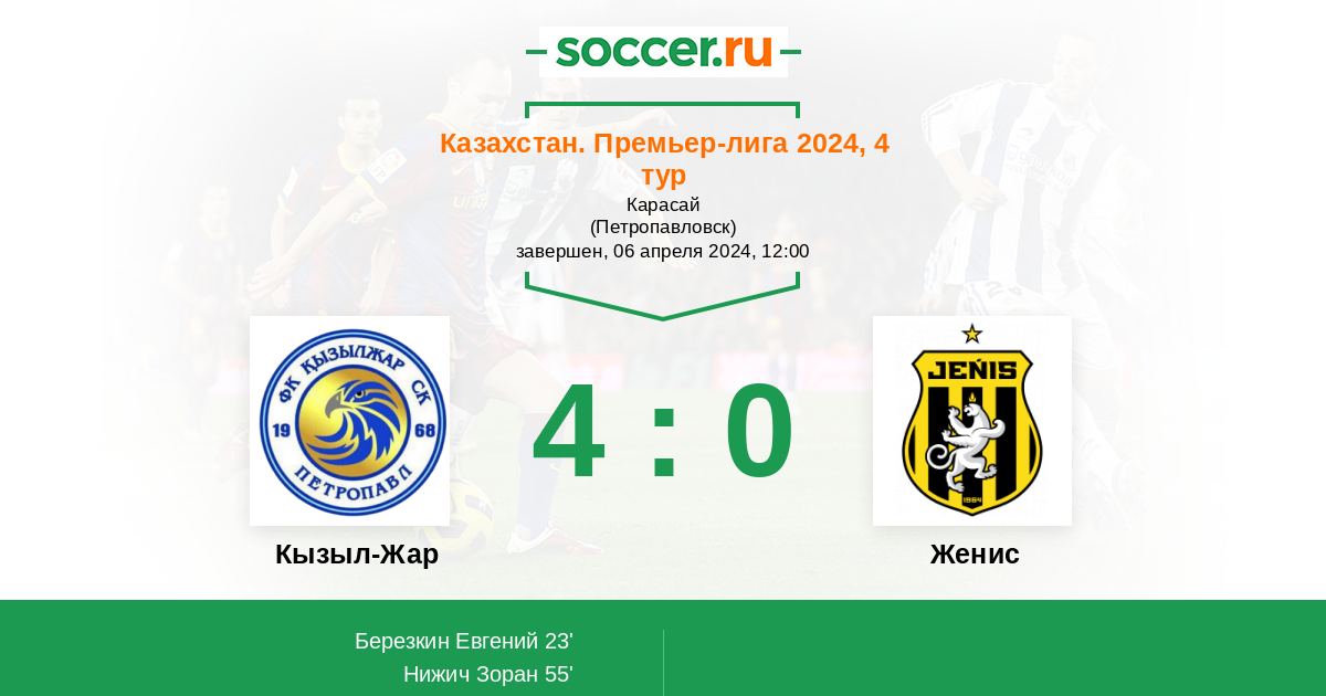 Кызыл-Жар - Женис: обзор матча 6 апреля 2024