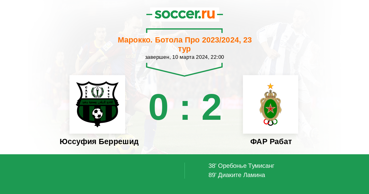 Юссуфия Беррешид - ФАР Рабат: обзор матча 10 марта 2024
