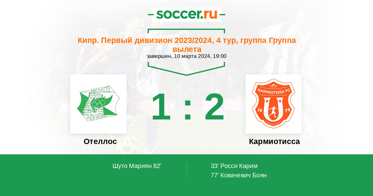 Отеллос - Кармиотисса: обзор матча 10 марта 2024