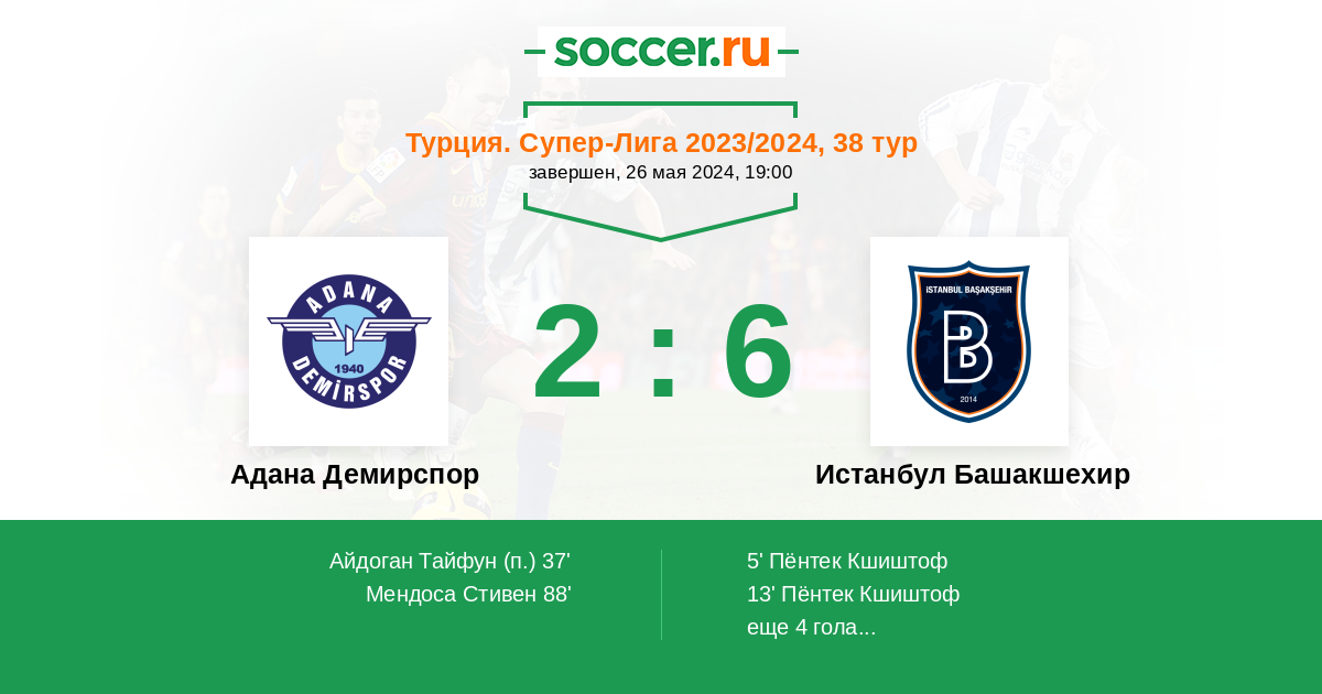 Адана Демирспор - Истанбул Башакшехир: обзор матча 26 мая 2024
