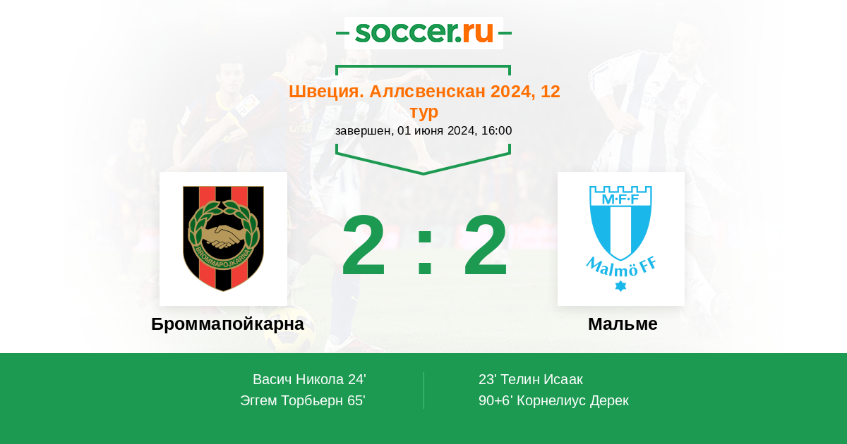Броммапойкарна - Мальме: обзор матча 1 июня 2024