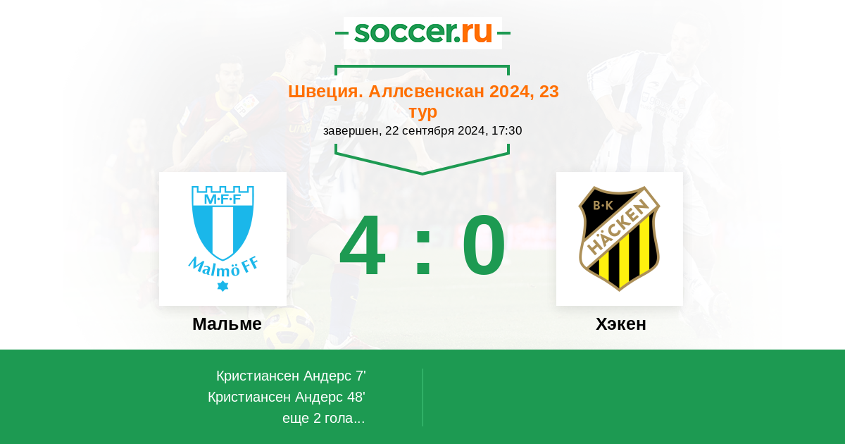 Мальме - Хэкен: обзор матча 22 сентября 2024