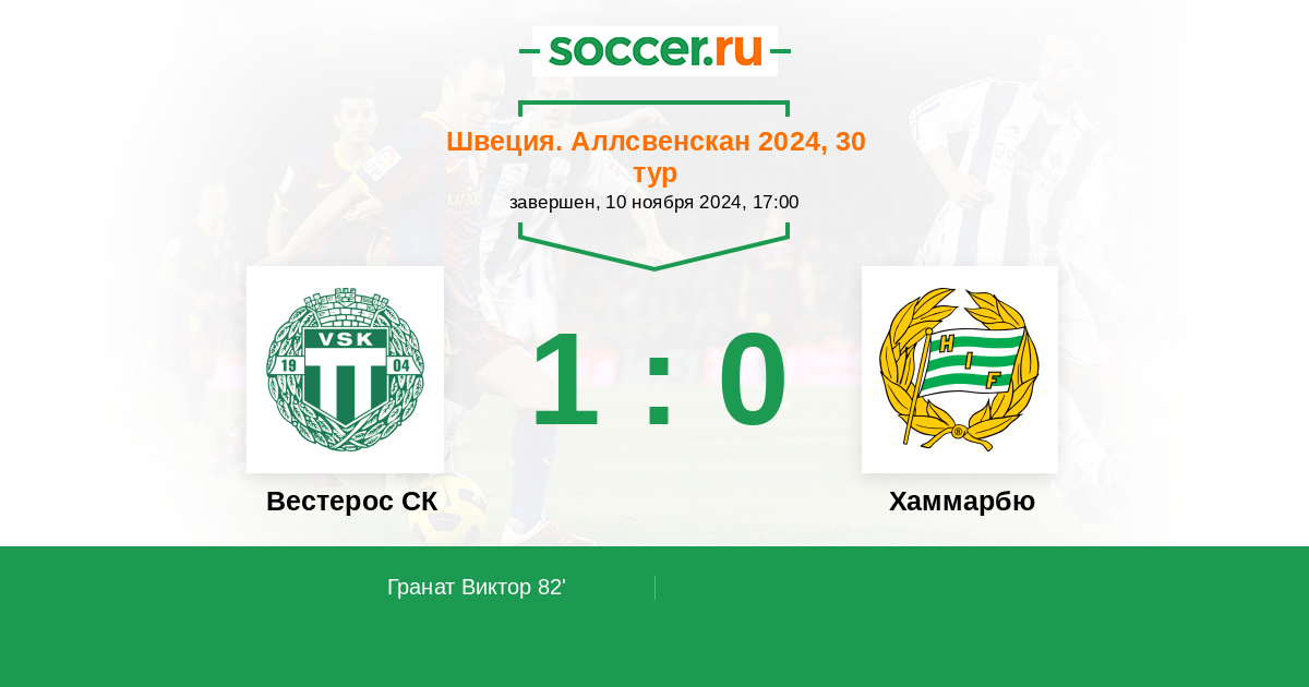 Вестерос СК - Хаммарбю: обзор матча 10 ноября 2024