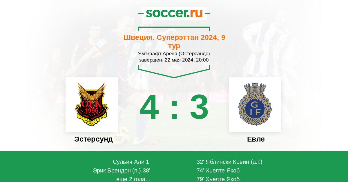 Эстерсунд - Евле: обзор матча 22 мая 2024
