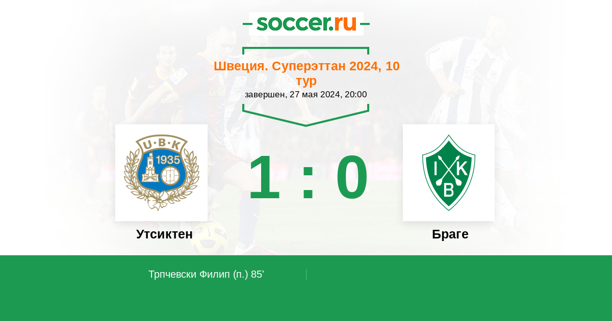 Утсиктен - Браге: обзор матча 27 мая 2024