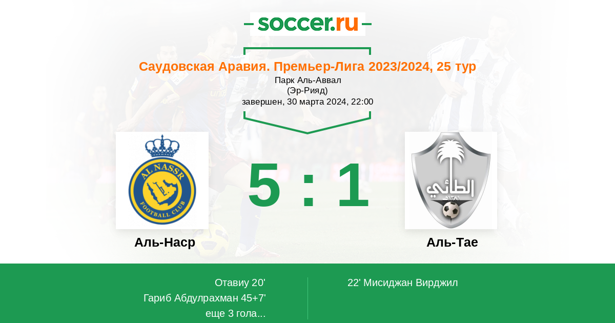 Аль-Наср - Аль-Тае: обзор матча 30 марта 2024