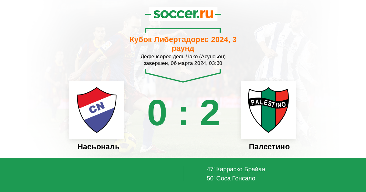 Насьональ - Палестино: обзор матча 6 марта 2024